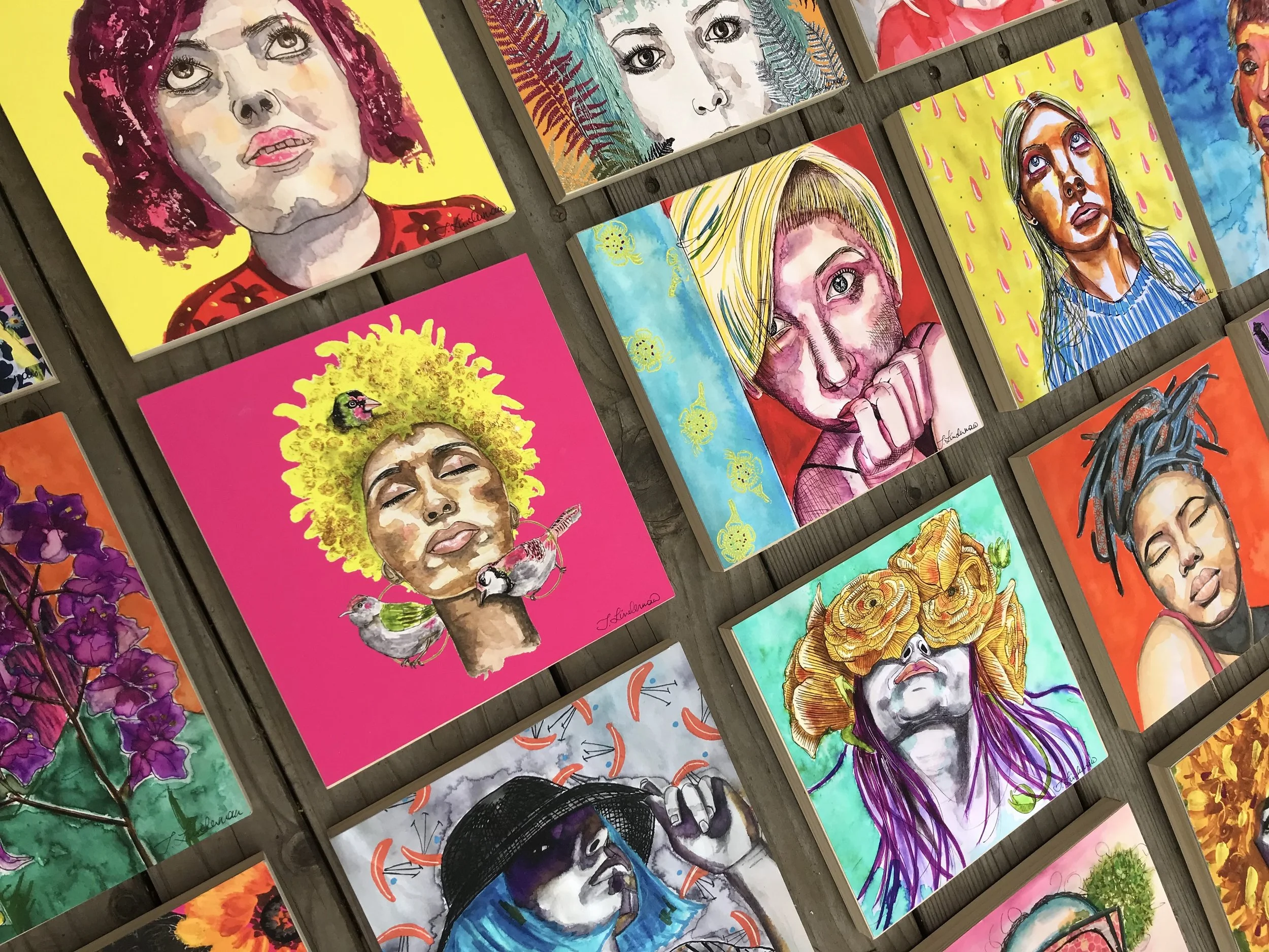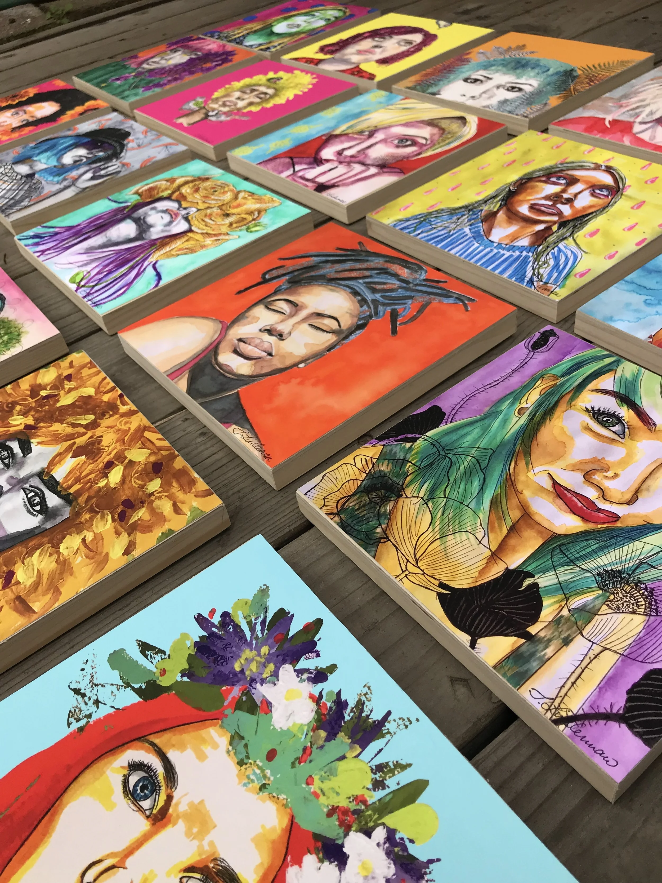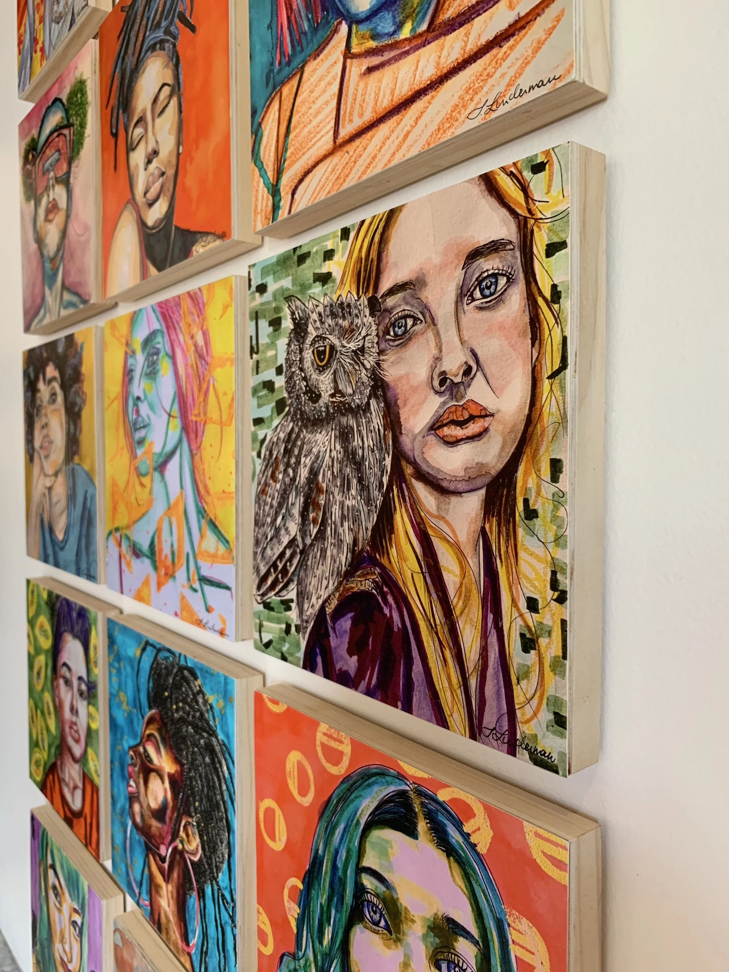 My favorite portrait subjects are females and the female form. I usually change the colors of the original reference quite a bit and even add in my own background patterns to give the portrait my own unique interpretation.